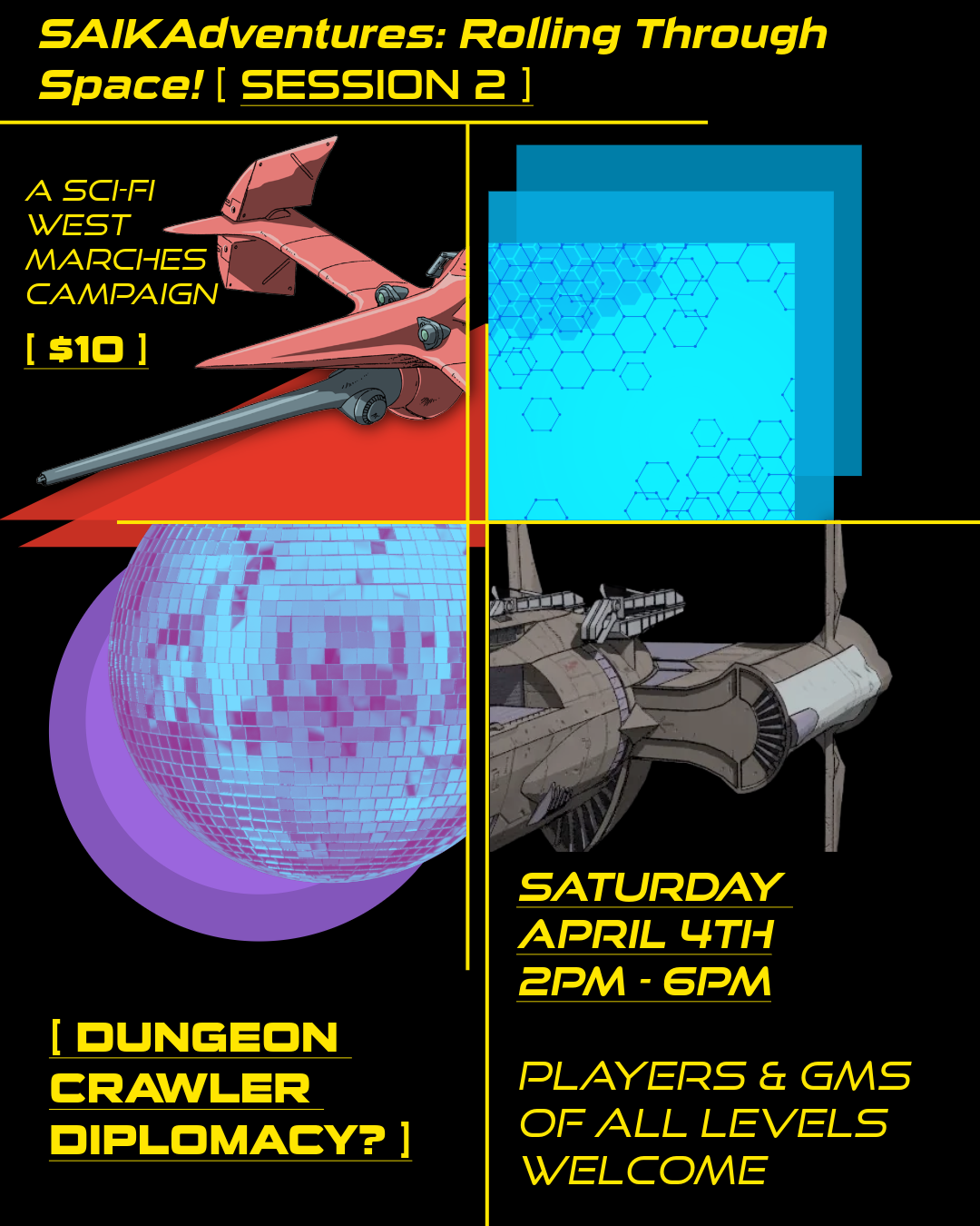 Saikaโs very own Sci-Fi West Marches Campaign, the first Saturday of every month.